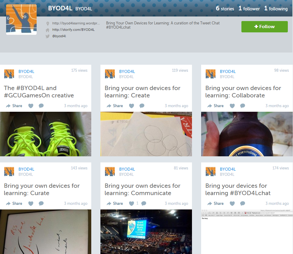 An example of a Storify used for an online short course called Bring Your Own Devices for Learning can be fond here: https://storify.com/byod4l