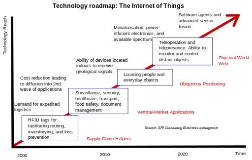“Internet of Things” by SRI Consulting Business Intelligence/National Intelligence Council – Apendix F of Disruptive Technologies Global Trends 2025 page 1 Figure 15 (Background: The Internet of Things). Licensed under Public Domain via Commons – https://commons.wikimedia.org/wiki/File:Internet_of_Things.svg#/media/File:Internet_of_Things.svg