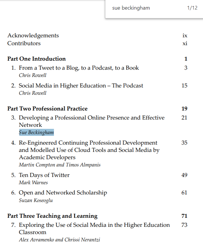 The book above is called Social Media in Higher Education: Case Studies, Reflections and Analysis edited by Chris Rowell.