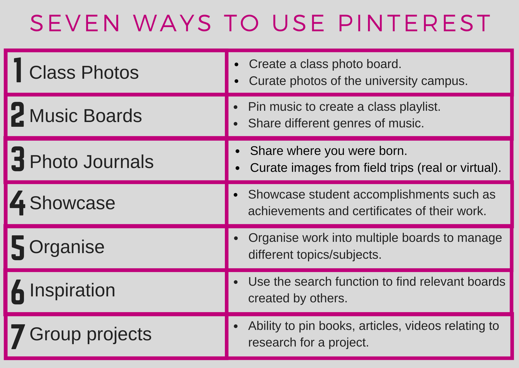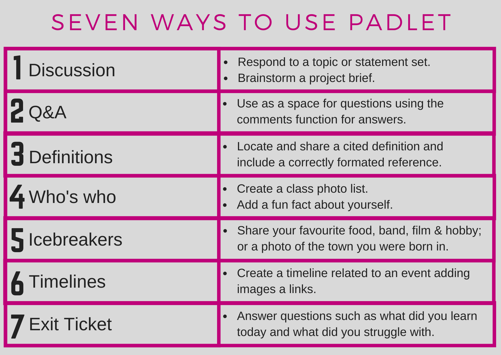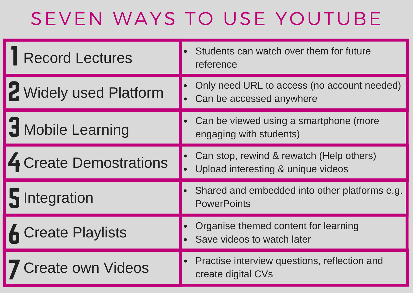 This card set takes a range of social media tools in turn and demonstrates seven ways in which each can be used for learning and teaching. They were printed as A6 double side cards and used as a discussion point in Social Media for Learning workshops where both staff and students were invited to attend.